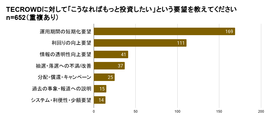TECROWDに対して今後期待する点として、以下のご意見を多くいただきました。