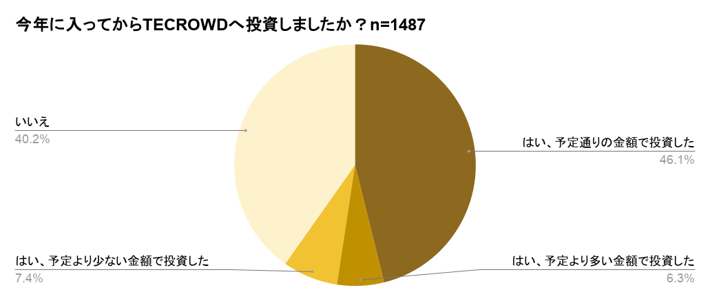 ご回答いただいた皆さまのうち、6割の方が今年に入ってからTECROWDに投資されています。