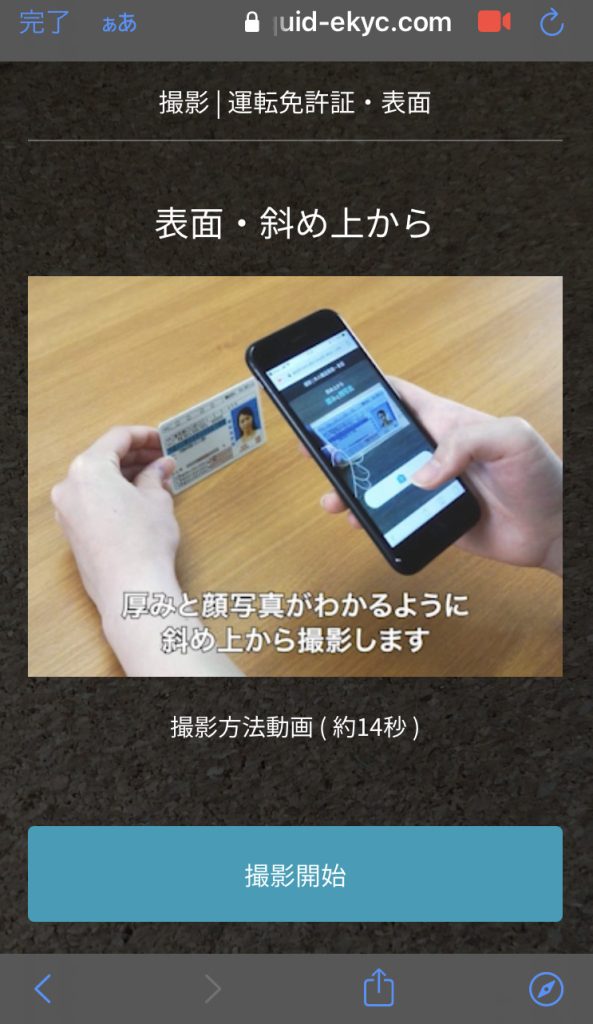 | プロセス | スマホで本人確認書類と顔を撮影 |