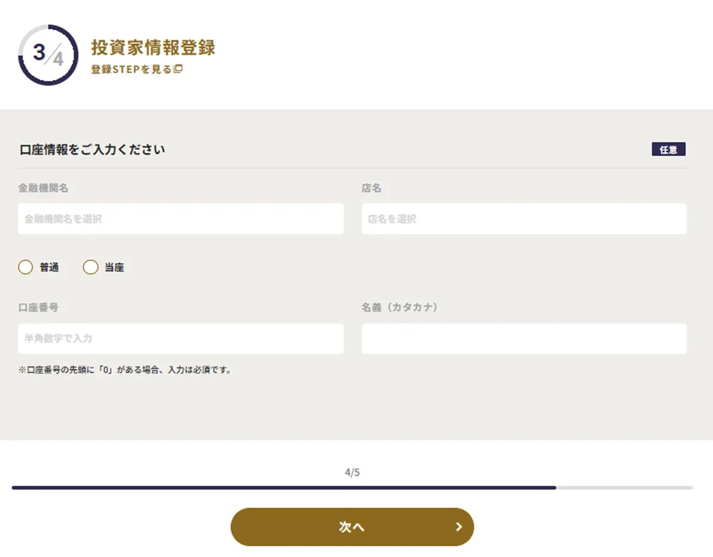 口座情報の入力はスキップし、後ほどマイページより登録が可能です。