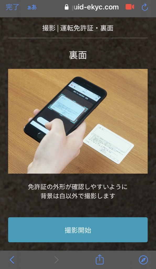 ガイドに沿って本人確認書類の裏面を画面枠内に収め、撮影してください。