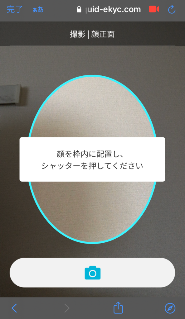 ガイドに沿って本人確認書類の表面を画面枠内に収め、撮影してください。