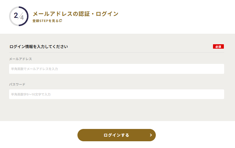 ご案内したメールの会員ログインURLをクリックいただくと下記ログイン画面が表示されます。メールアドレスとパスワードが入力されていることをご確認のうえ、「ログインする」ボタンをクリックします。