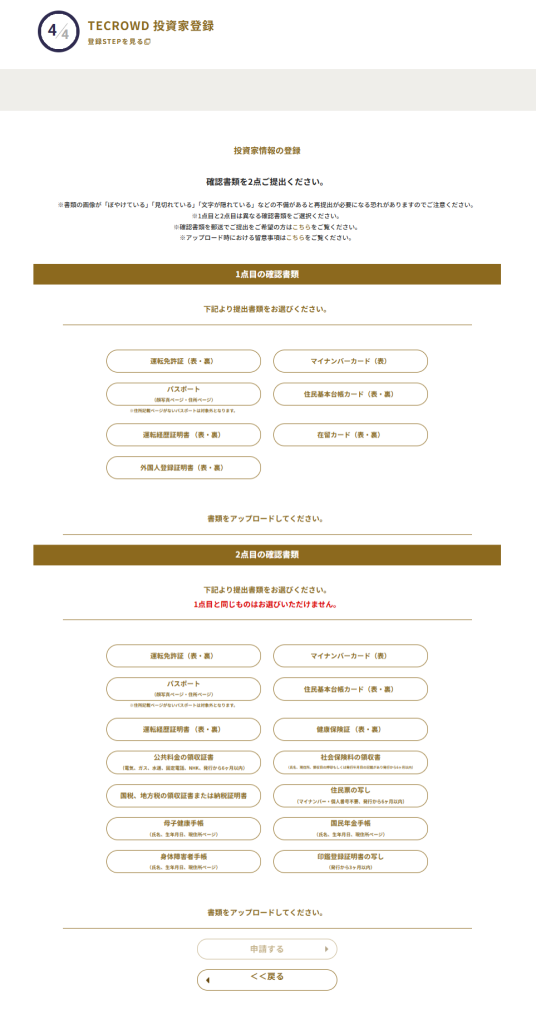 2点の確認書類を選択したら、「申請する」をクリックします。