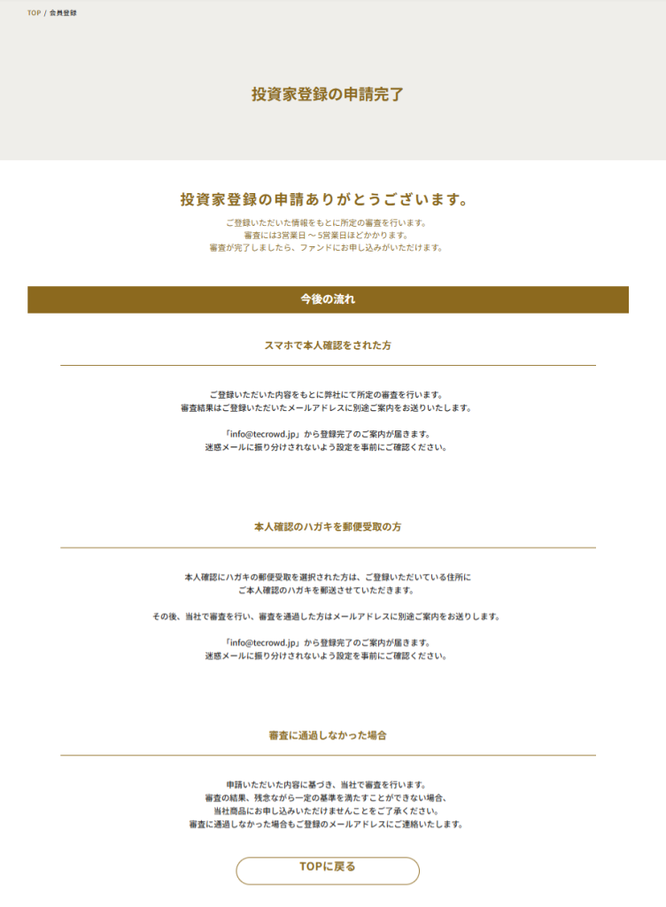 必要な手続きはすべて完了となります。審査完了までお待ちください。(審査には2営業日以上要します。)