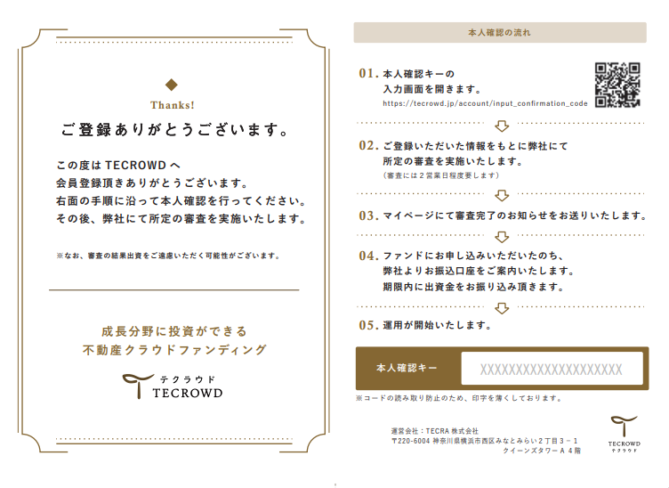 2026.03.11不動産クラウドファンディングこちらは、会員登録の手順解説ページの「Step4 本人確認の選択」で「書類アップロード&転送不要はがき受取」を選択した場合の書類アップロード方法、転送不要はがき受取後の本人確認キーの入力の手順を解説します。