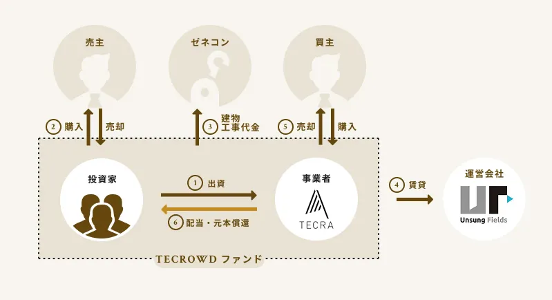 TECROWDでは、データセンターファンドの組成にあたり、データセンターの運営を株式会社Unsung Fieldsへ委託しております。