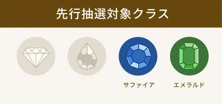本ファンドは、ダイヤモンドクラス~ルビークラスの会員様を対象として、先行抽選システムを採用いたします。