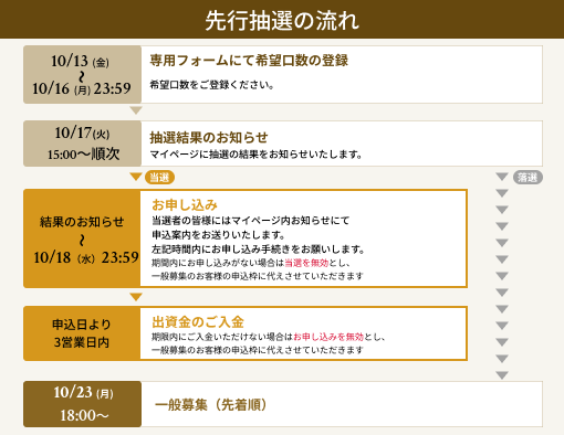 ③当選者ファンド申込期間 :10月17日(火)の抽選結果お知らせ後~10月18日(水)23:59